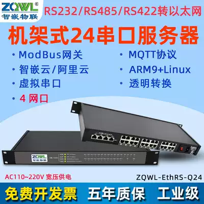 (Smart embedded Internet of things) rack-mounted 24 serial server RS232 422 485 to Ethernet module industrial-grade ModbusRTU TCP gateway MQTT