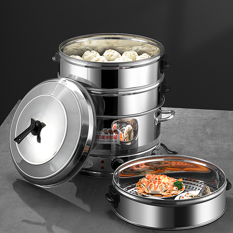 Commercial electric steamer Multi-functional household three-layer automatic electric steamer Large capacity thickened intelligent steamed steamed bun steamer