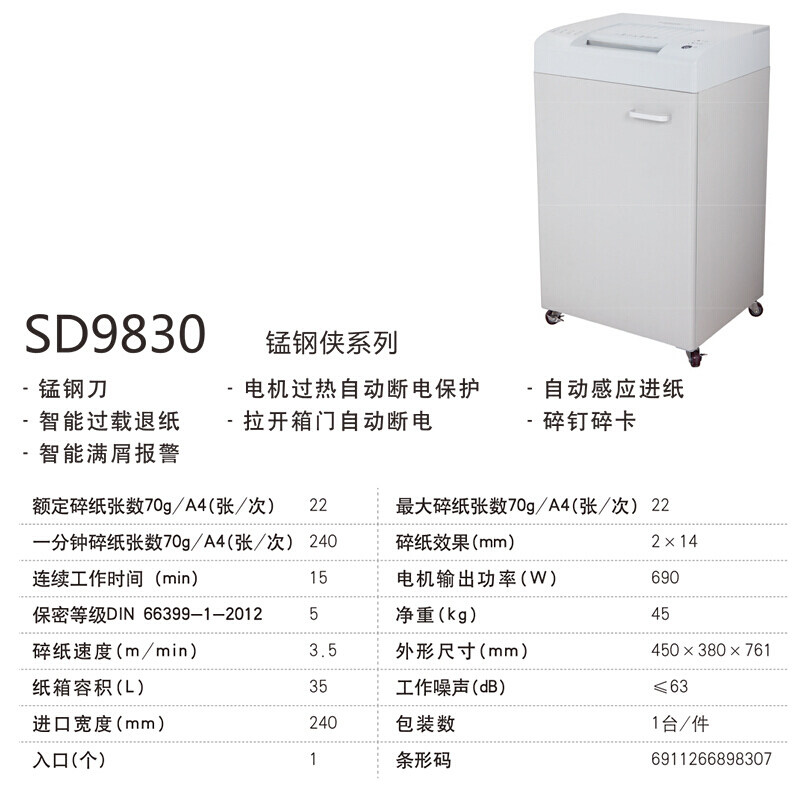 Three-wood SUNWOODSD9830 shredder large shredder high power high-efficiency office single-size 22 sheets