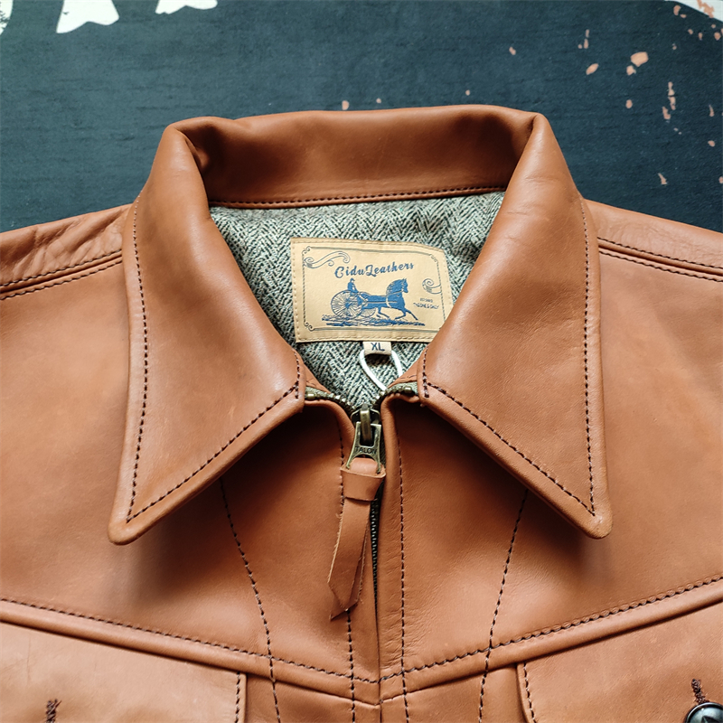 Photograph the conversion price RMB2298 1 2mm HORWEEN Implanted Tanning Mappie RRL MOZADE Mossad leather jacket