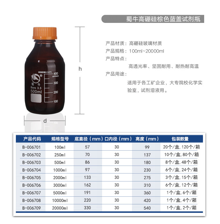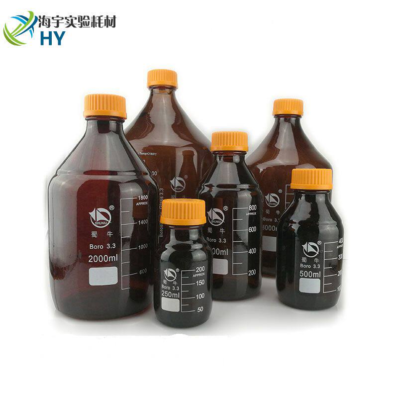 500ml Shu Bull Brown High Boron Silicon Blue Cover Reagent Bottle 3 3 High Temperature Sterilization Bottle Glass Bottle Silk Mouth Reagent Bottle