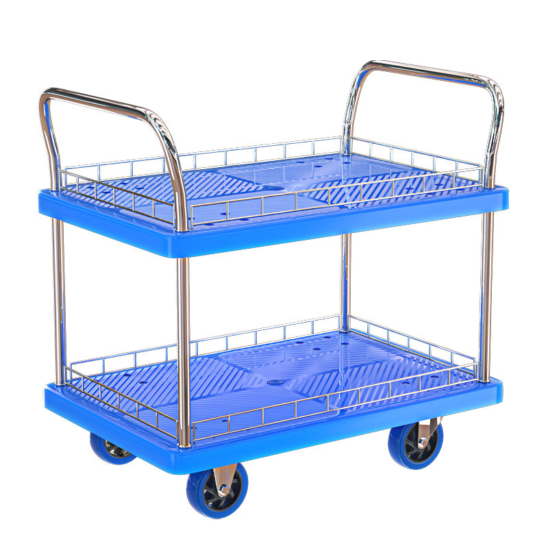 Double-layer three-storey wheel cart silent supermarket pull flat scooter vehicle four wheel warehouse handling fence cart