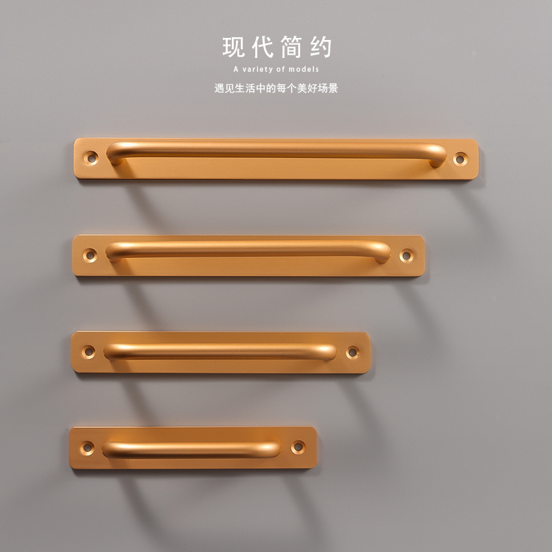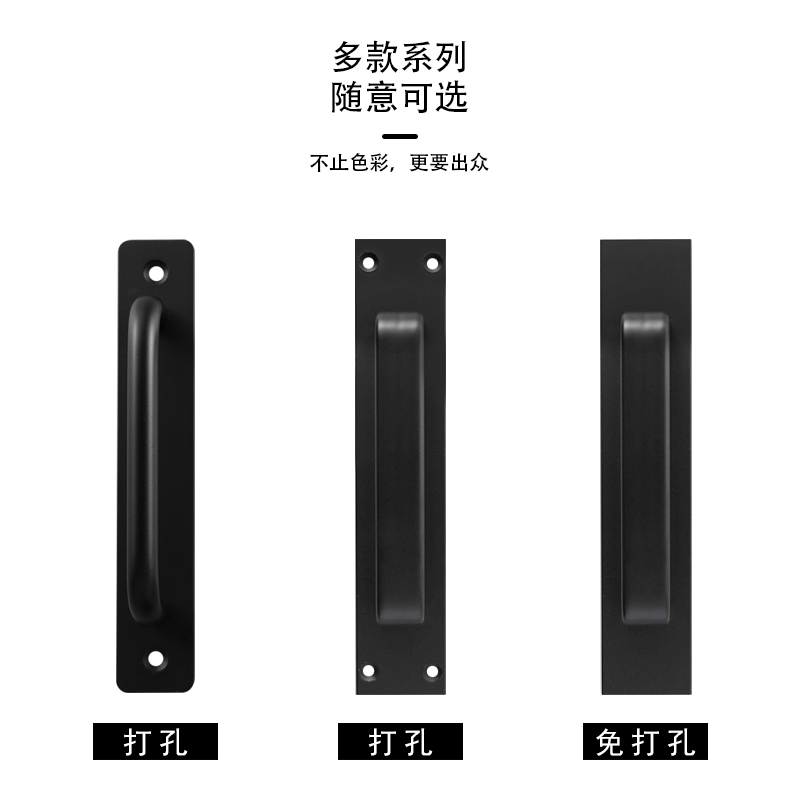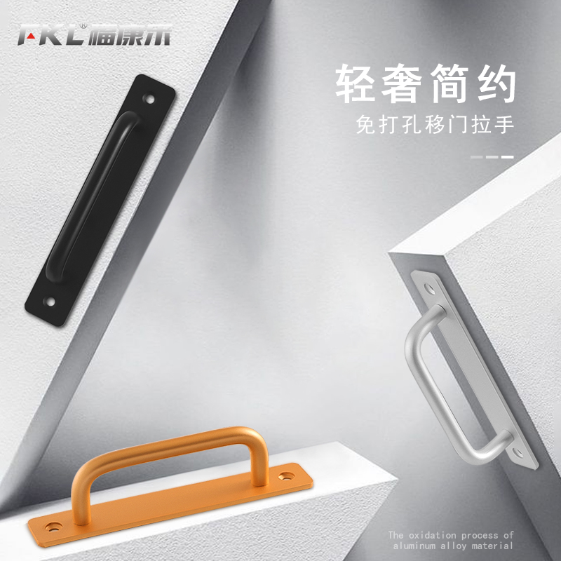 Modern simple moving door handle aluminum alloy black wardrobe door pull door and window free punch hands silver