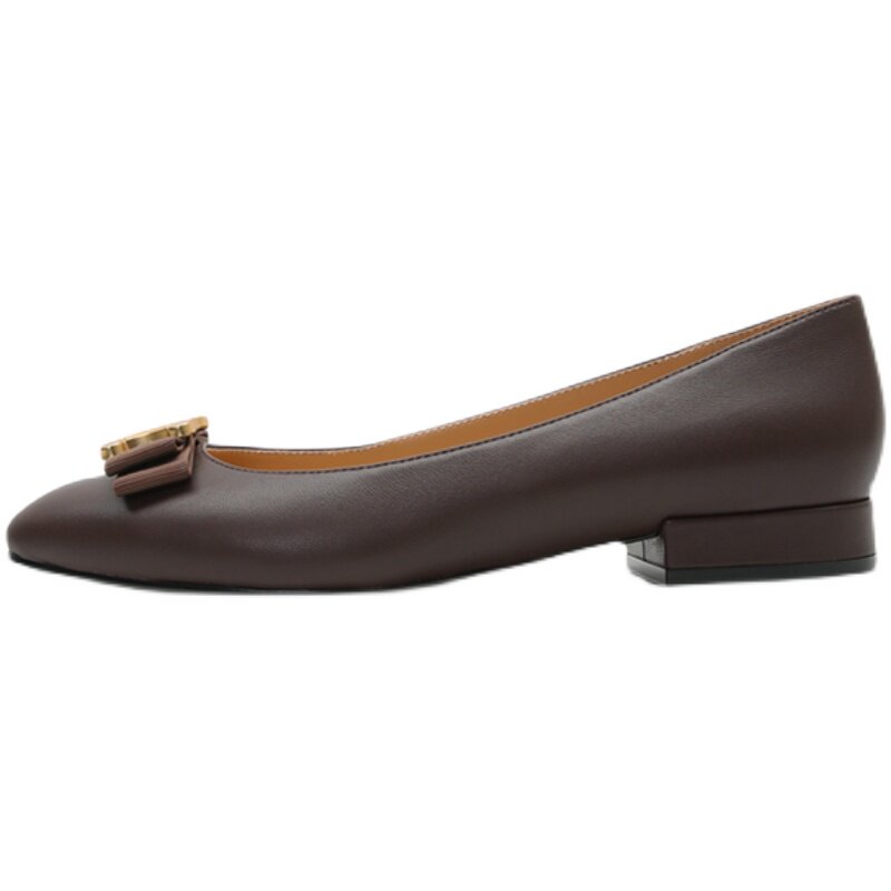 Exquisite Arc de Triomphe ~ shallow sheepskin flat shoes square toe shoes women flat heel bow 2021 spring new products