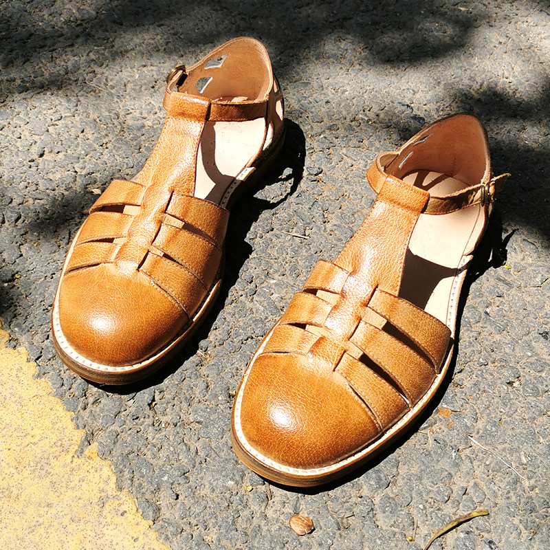 Pure handmade head layer of cow leather French style Baotou Roman sandals men's art retro genuine leather to make old beach shoes sandals women