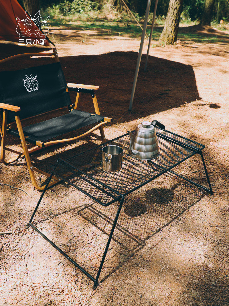 Three little donkeys set up a set of stands camping operation counter stove rack grill grill wrought iron folding table multifunctional working table