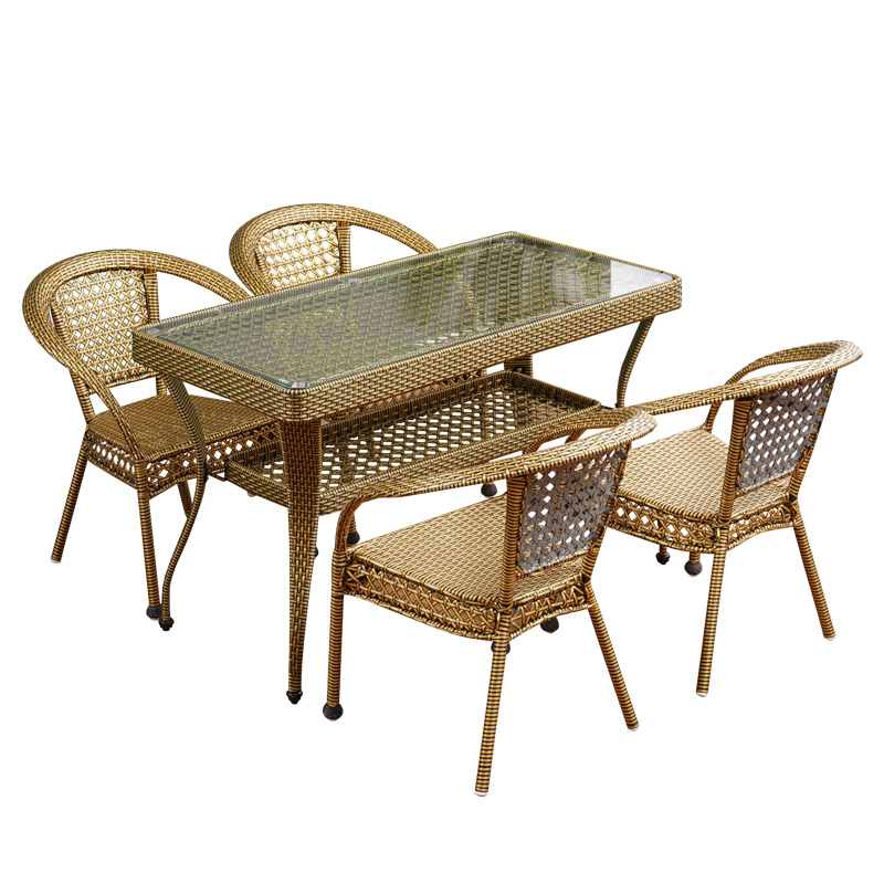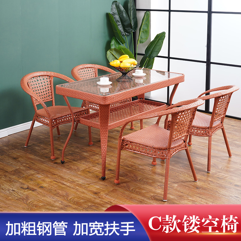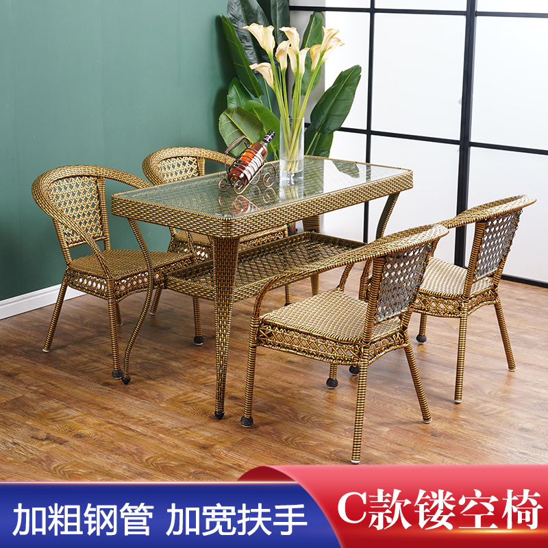 Outdoor tables and chairs courtyard long table rattan chair three or five pieces set home tea table balcony wrought iron leisure tea table combination terrace
