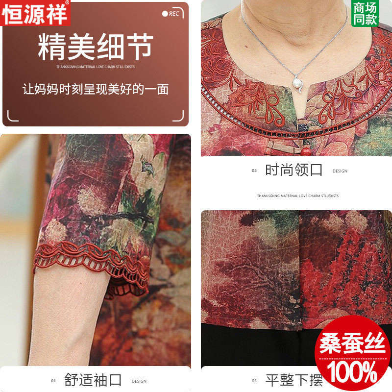 Hengyuan Xiang Old Man Summer Silk Shirt Grandmother Set Old Man Clothes Mother Town Sansilk Shirt
