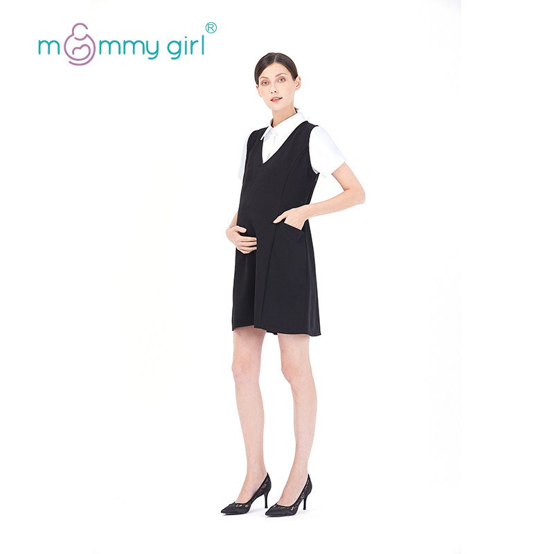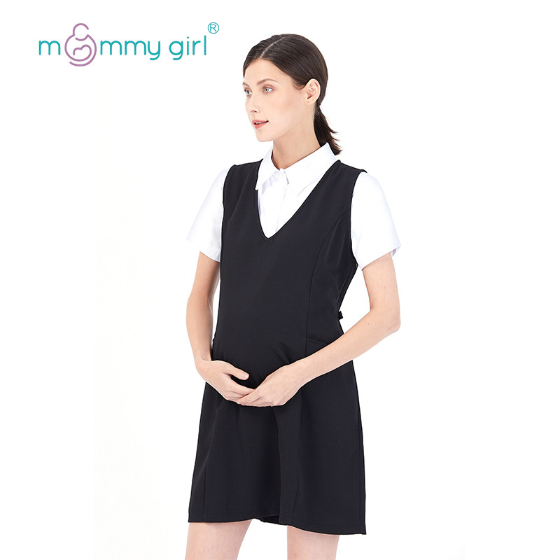 Pregnant Woman Lian Dress Spring Autumn V Collar Temperament Big Code Pure Color Interview For Work Positive Dress OL Working Dress a Skirt Spring Summer-Taobao