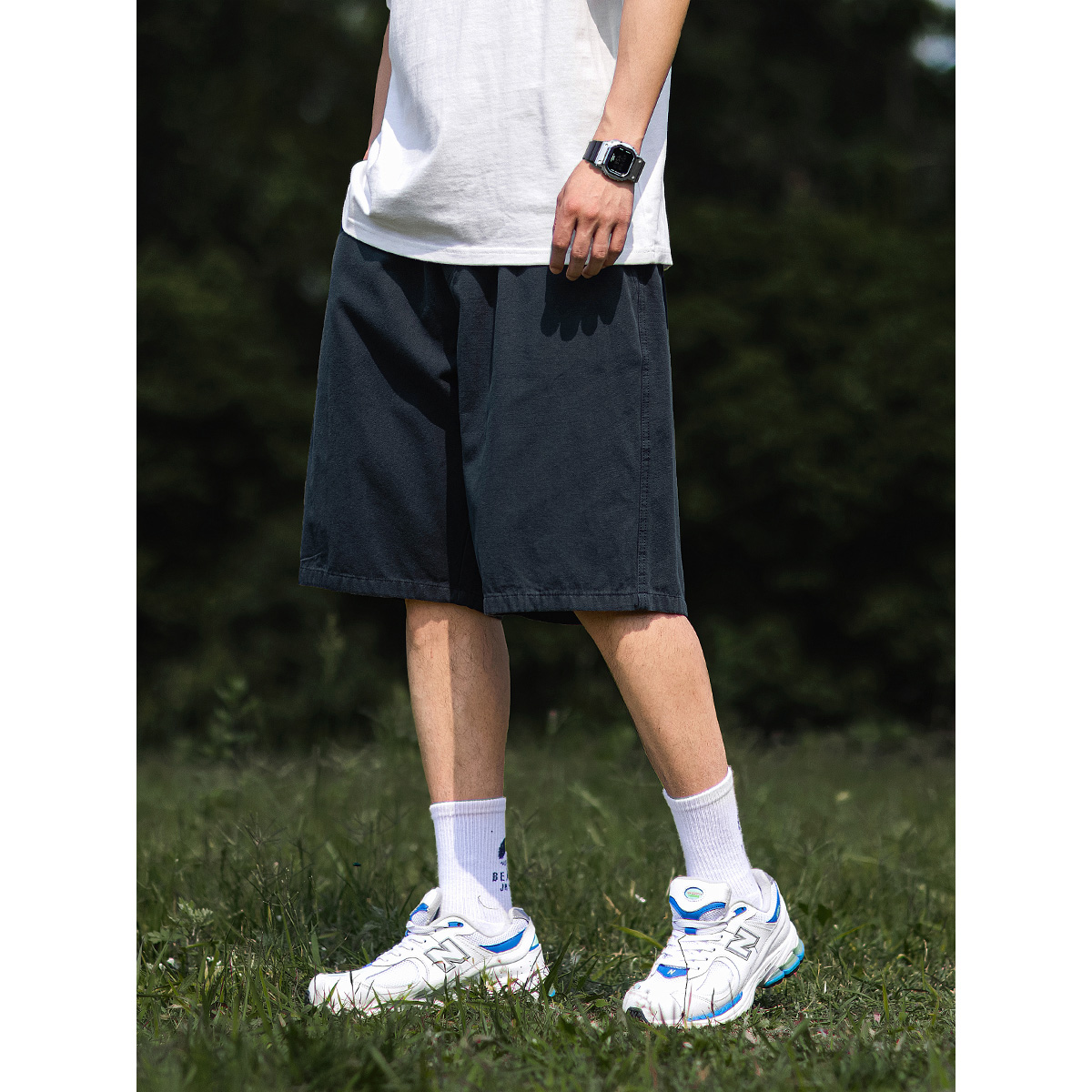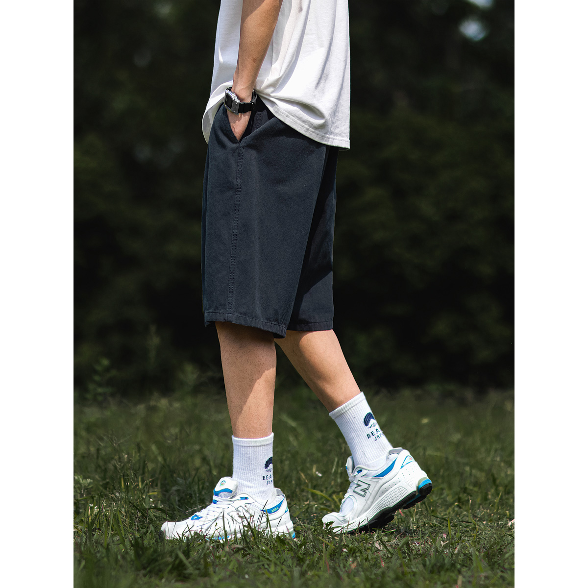 BDLS Japanese cityboy basic solid color overalls shorts men's summer new loose casual drawstring five-point pants