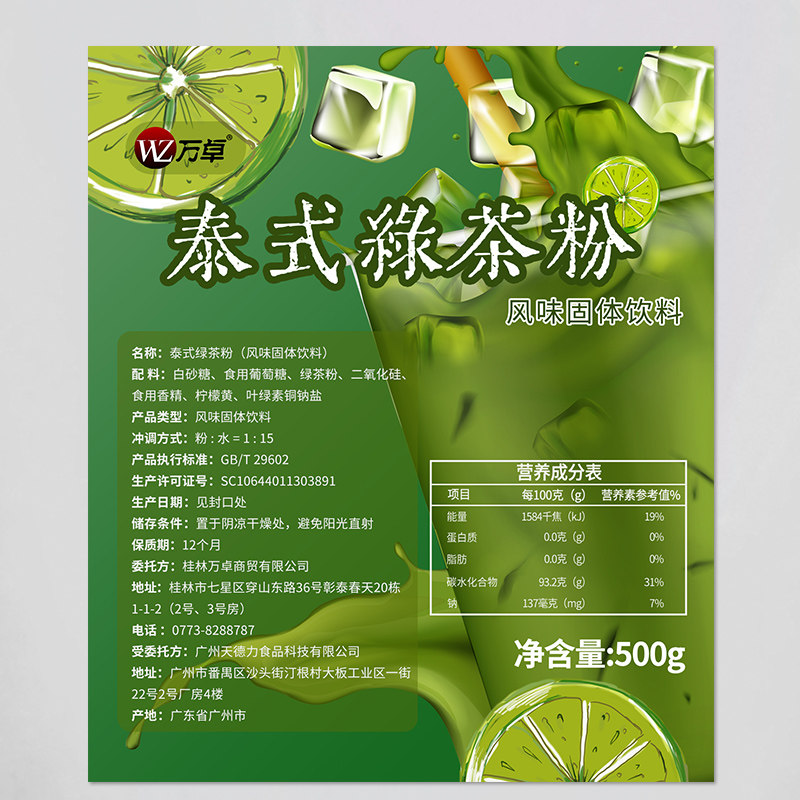 Thai-style green tea powder slag men forgive green milk tea shop special Thai-style milk green lemon tea Thai green beat lemon