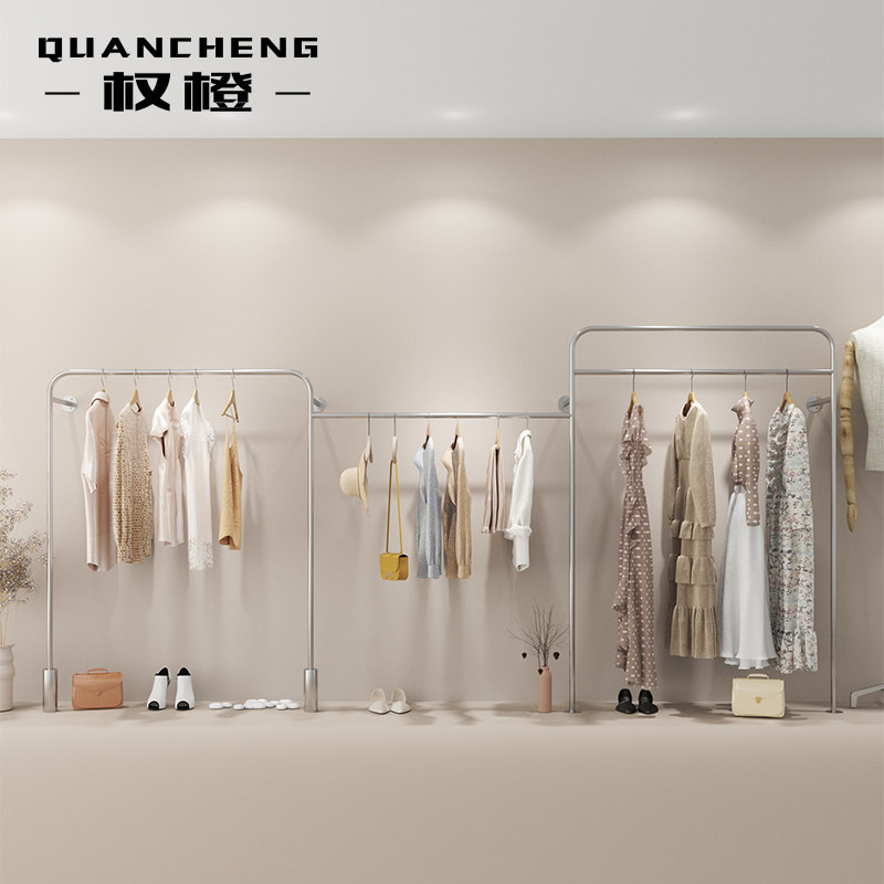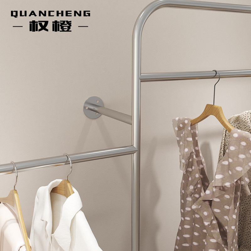 Net red clothing store display rack against the wall wall-mounted stainless steel hanging shelf silver women's clothing store shelf