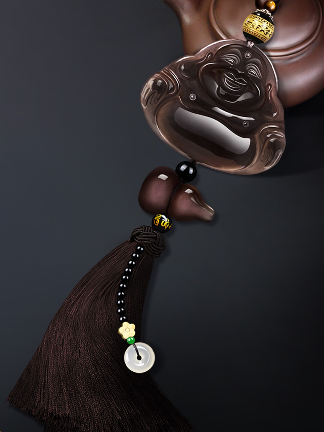 Mercedes-Benz BMW car pendant car interior decoration supplies obsidian Maitreya Buddha car rearview mirror pendant high-end