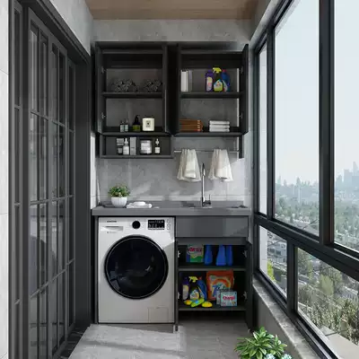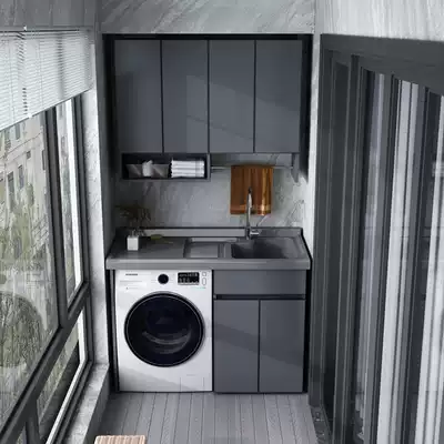 Balcony washing machine cabinet drum companion one-piece basin combination custom with washboard artificial rock basin space aluminum