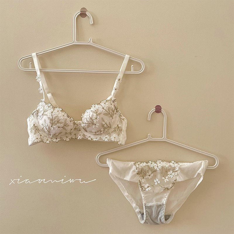 Japanese girl sweet rimmed small chest gathered on the collection of sub-milk lace underwear set Summer thin bra