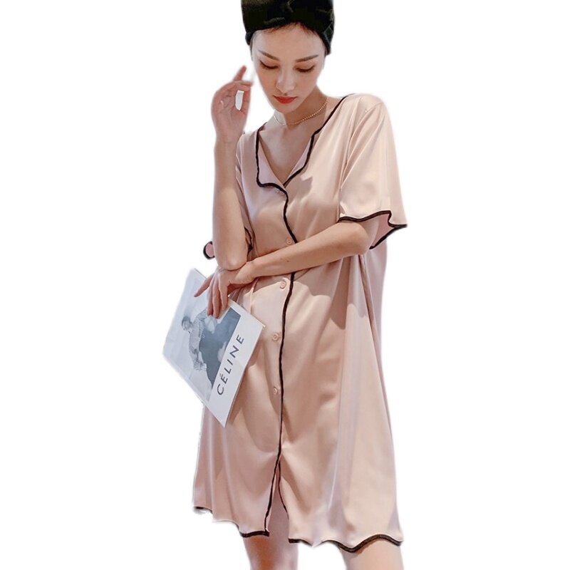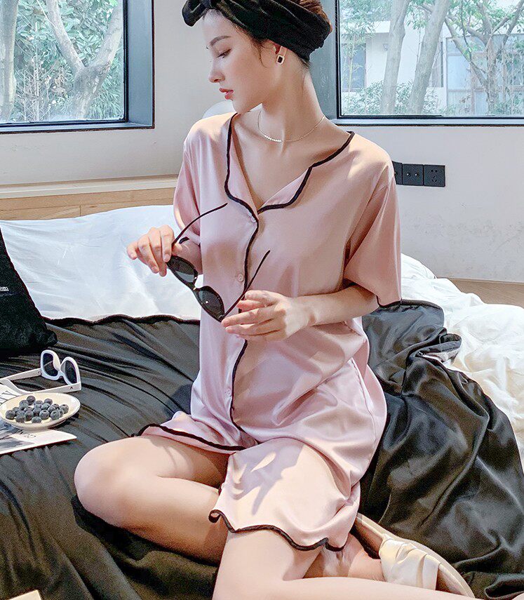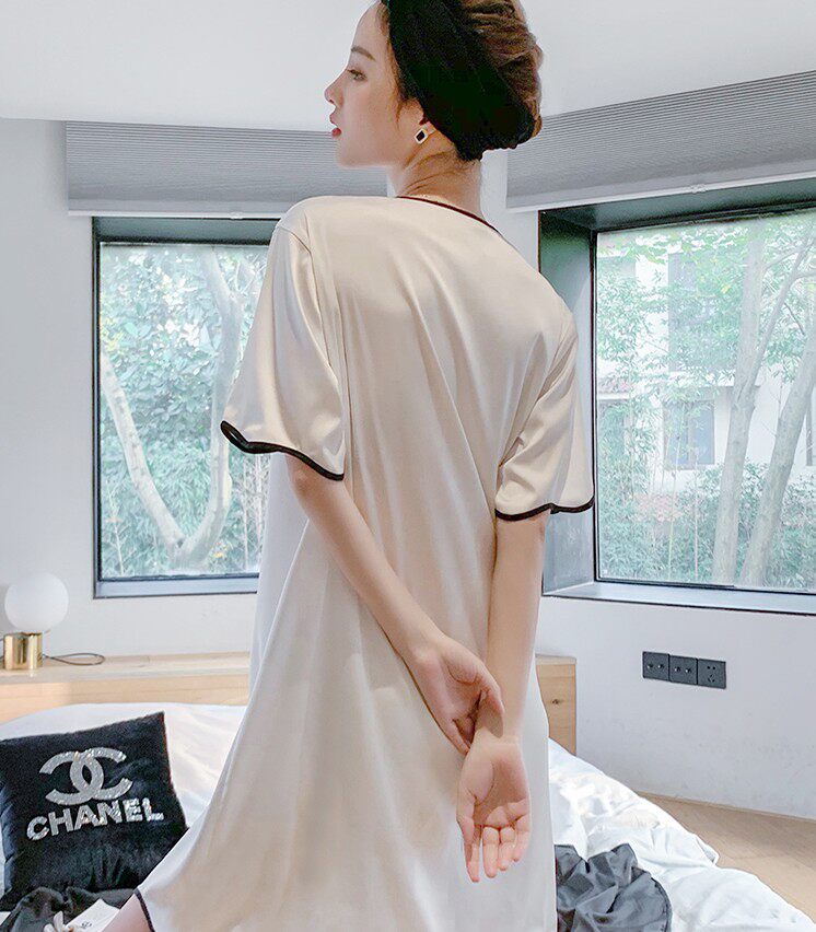 Ice Silk Sleepwear Lady 2022 New Summer Sexy Spice Real Silk Sleeping Dress Short Sleeve Home Clothing Web Reddits