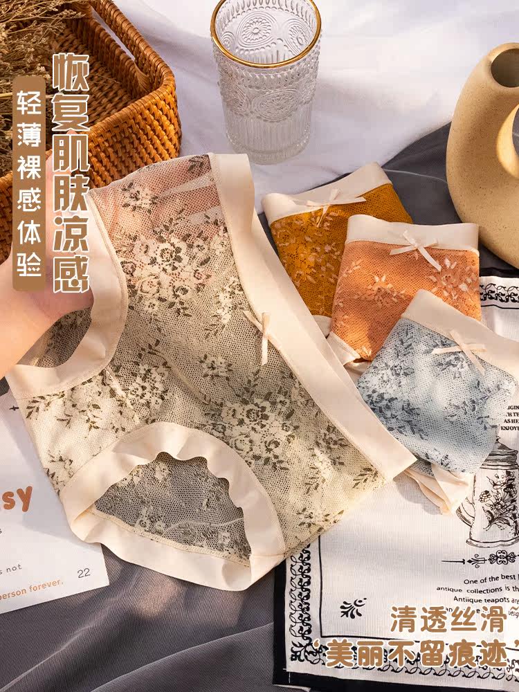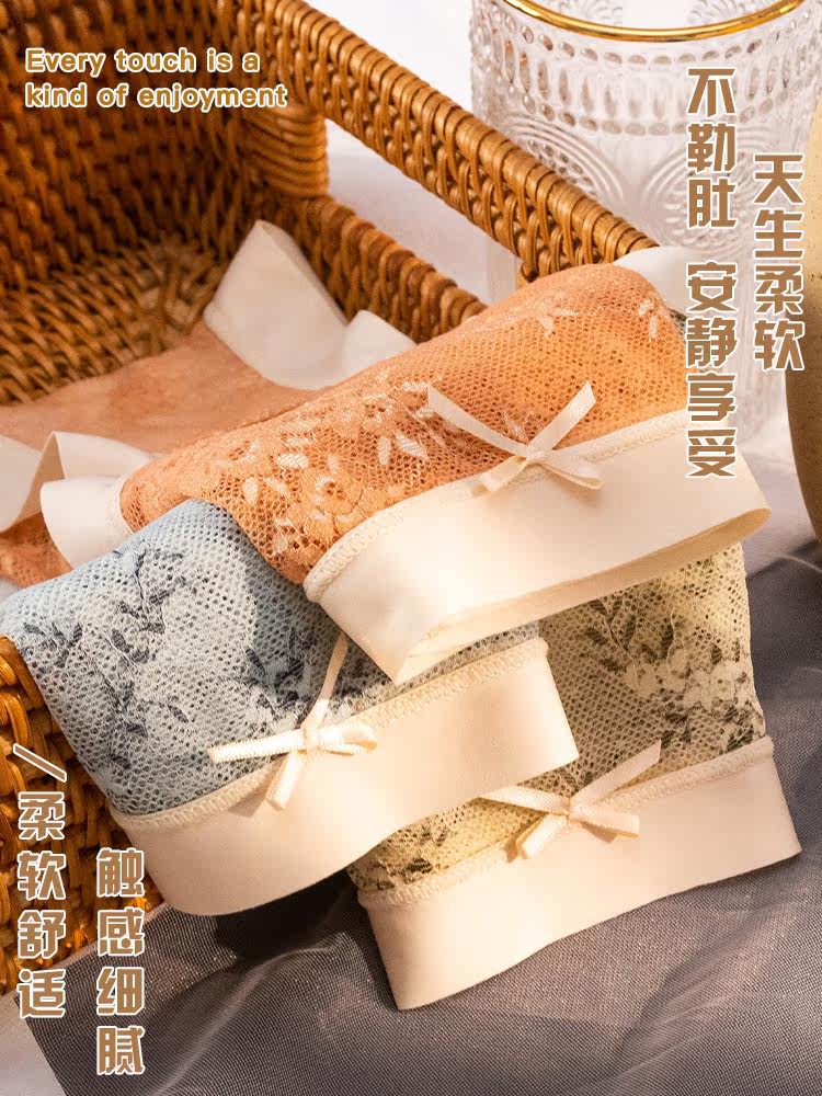 Catman seamless panties women's mid-waist lace sexy summer thin section breathable confusion women's triangle shorts women's comfort