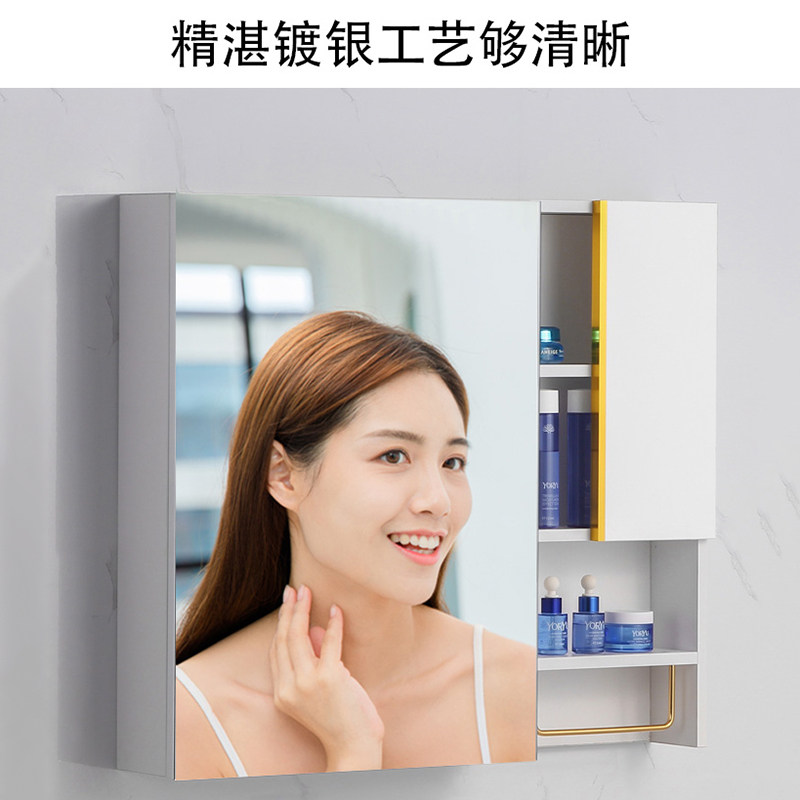 Modern minimalist white paint-free solid wood bathroom smart mirror cabinet bathroom wall-mounted storage object mirror box alone