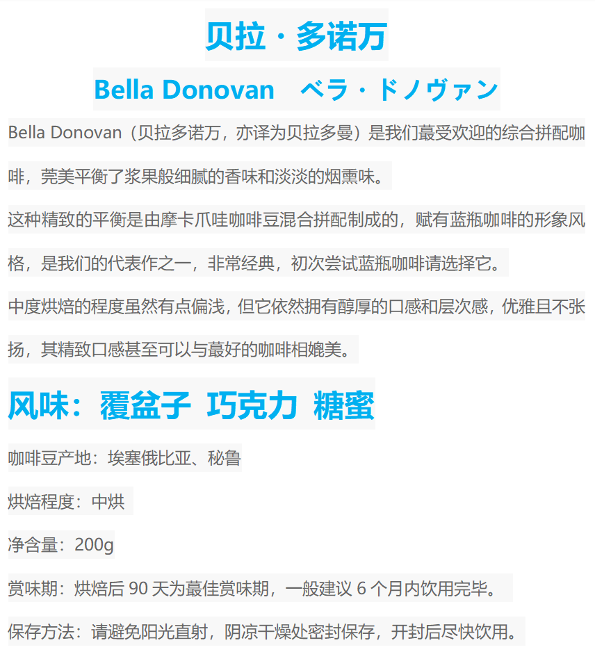 Spot Japan BlueBottle blue bottle coffee beans BellaDonovan Bella Donovan classic