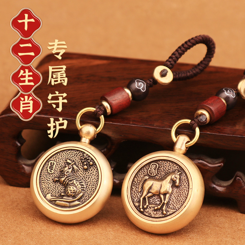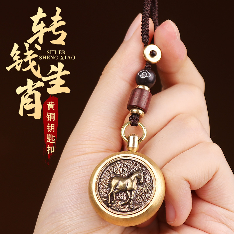 Pure copper brass zodiac key pendant transfer money transfer tiger year zhao cai transfer car key chain hanging high-end male