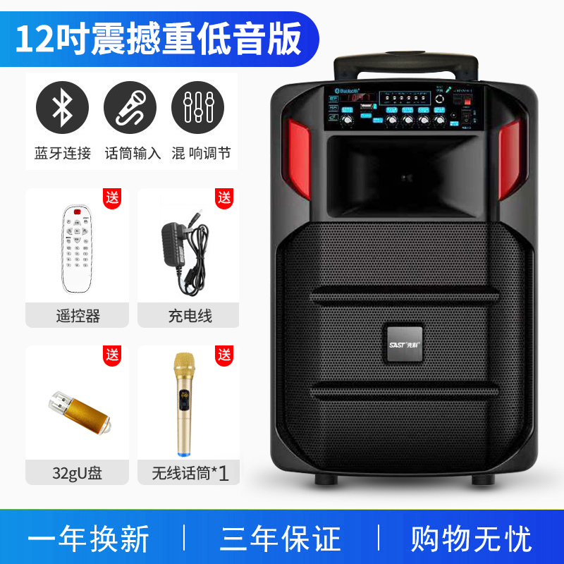 Square Dance Sound Outdoor Bluetooth Speaker K Song performs high power volume with wireless microphone heavy bass outdoor dancing mobile pull rod portable ground stall small professional singing