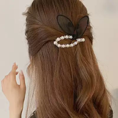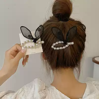Cute rabbit ear clip headgear exquisite pearl hairclip female summer side clip Net red hair card simple banger clip