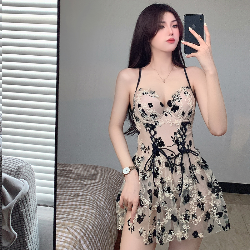 Shikola 2022 new steel button gathers swimsuit and small chest blast beach skirt sexy belly shade swimsuit woman