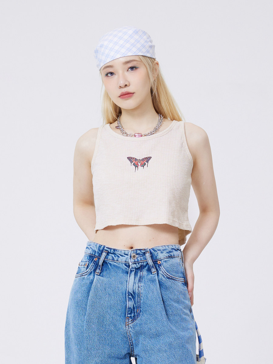INSNLASIA Original Butterfly Print Navel Vest Trendy Brand Feminine Sensual Sling Short Top