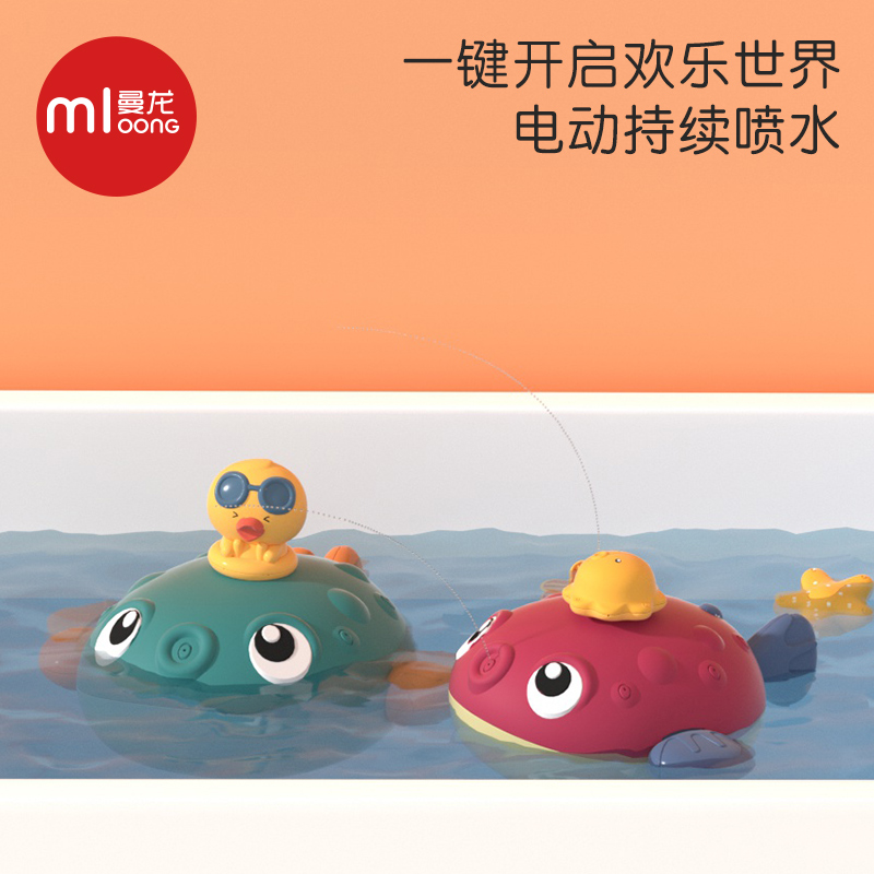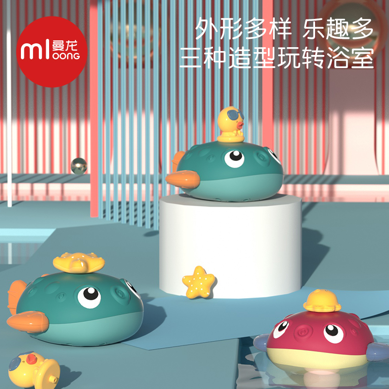Manlong baby bath toy children's bathroom electric play puffer fish baby boy girl cute fun water spray set