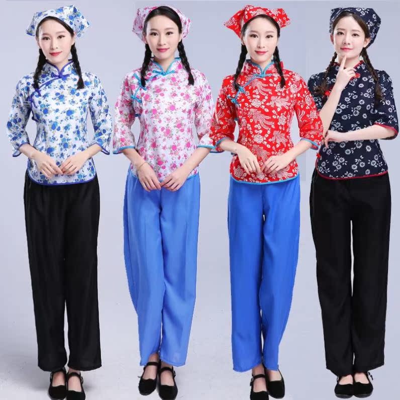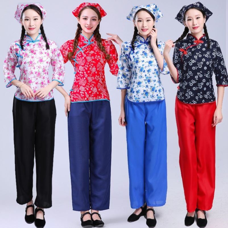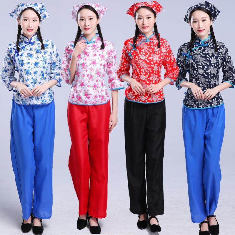 Blue Big Flower Shirt Headscarf Red Big Flower Shirt Headscarf Red Floral Shirt Headscarf New Aqing Sister's Top Headscarf Blue Big Flower Black Trousers Headscarf Blue Big Flower Blue Trousers Headscarf Blue Big Flower