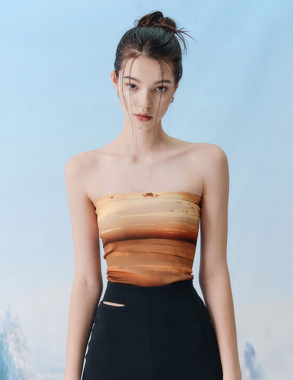 Spot YUSE Korean designer brand spicy girl cool with sundown sea moon light elastic short trowel