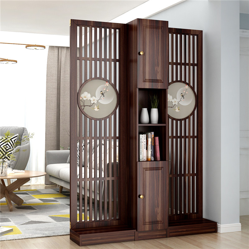 Living room Screen partition Decorative Wall New Chinese Style Entrance Door Closed Cabinet Brief Modern Entrance Door Solid Wood Ancient Rhyme Shelf