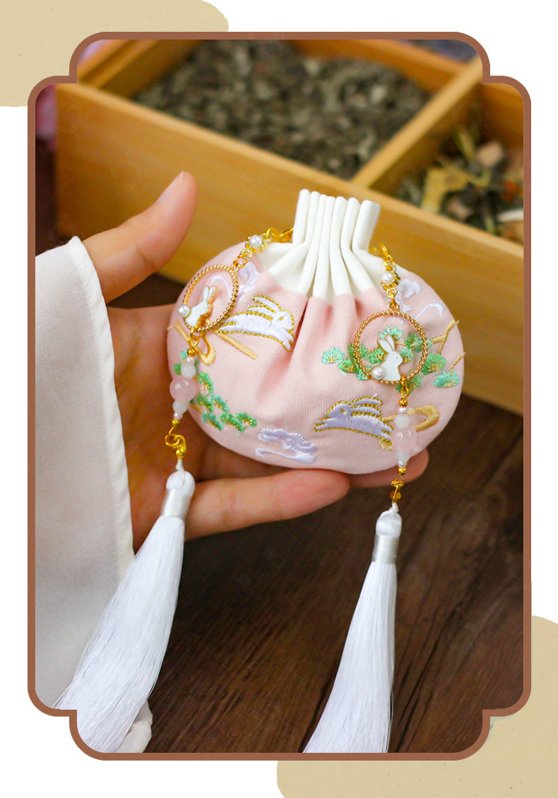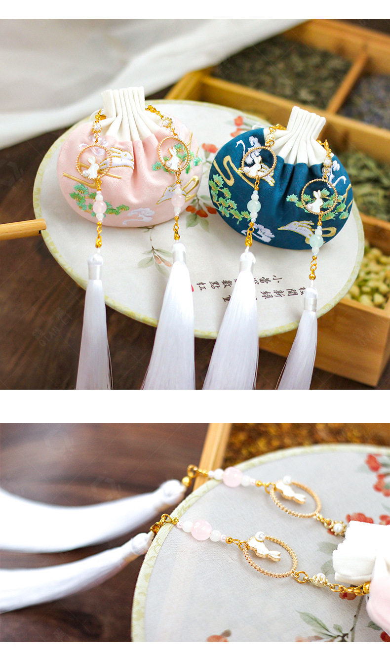 Festive sachet embroidery sachet empty bag jade rabbit ancient style Hanfu pendant portable waist pouch sachet girlfriend gift