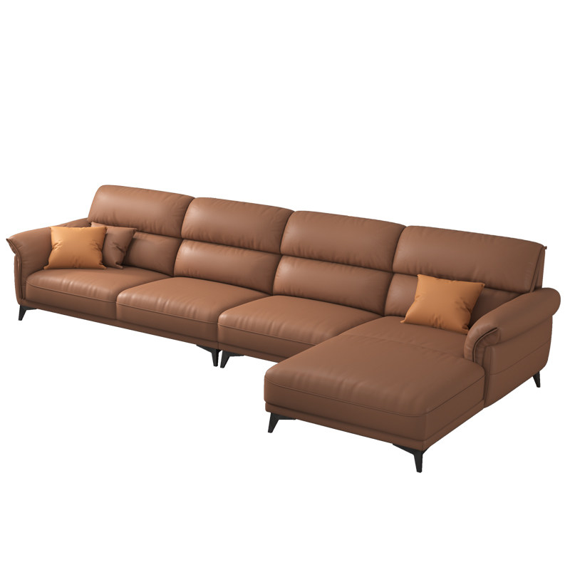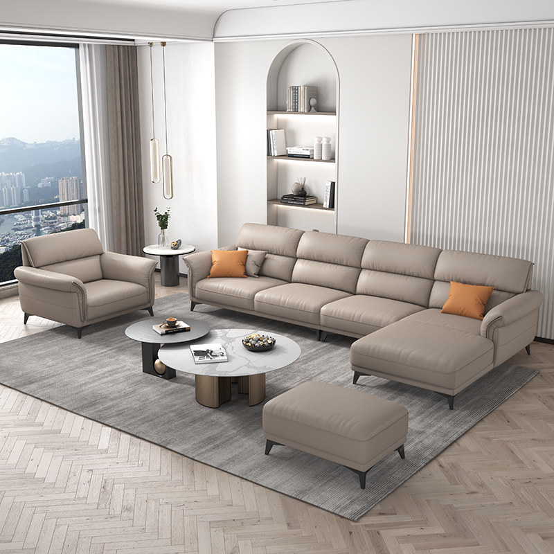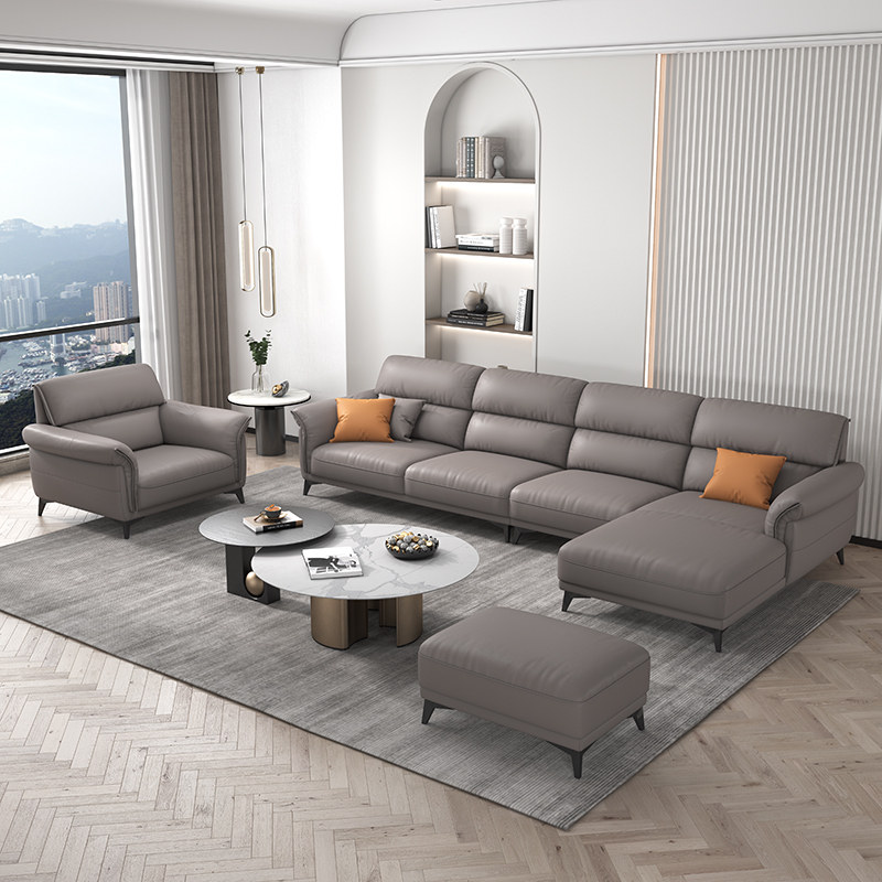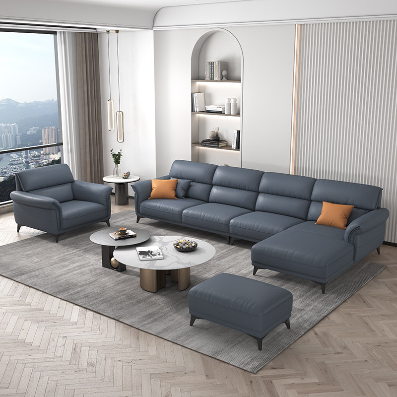 Italian minimalist leather sofa small apartment straight row three-person living room modern minimalist high-back leather sofa