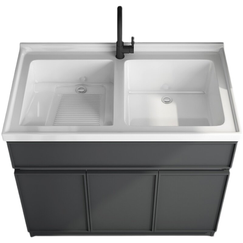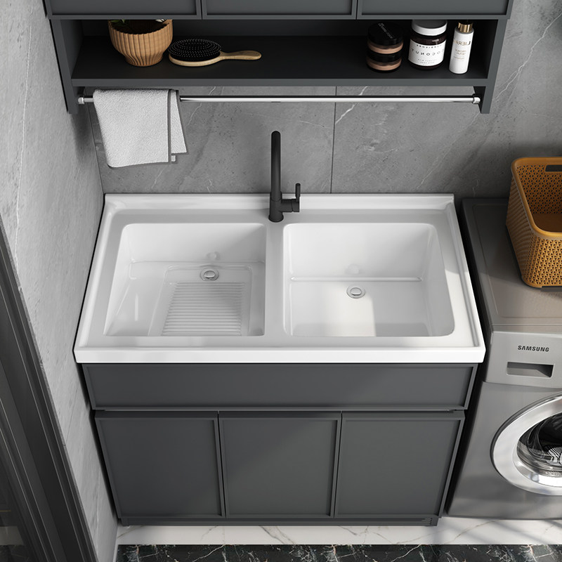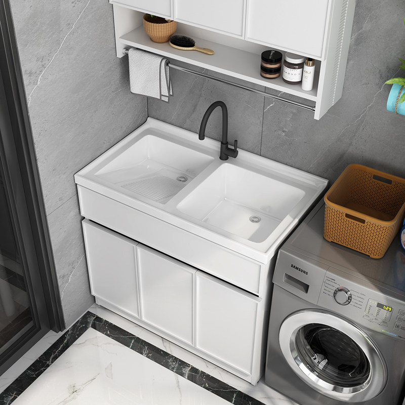 Balcony space aluminum laundry cabinet basin waterproof laundry tank is located in the bathroom cabinet combination double slot washbasin one-piece quartz stone pool