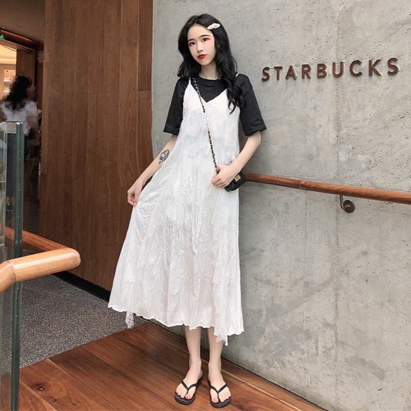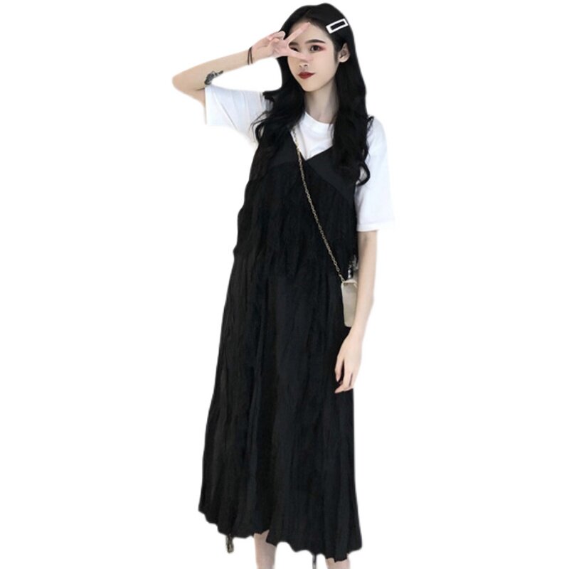 One-piece white sundress White sundress Black T (two-piece set)One-piece black sundress Black sundress White T (two-piece set)
