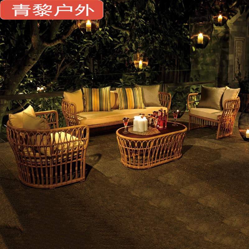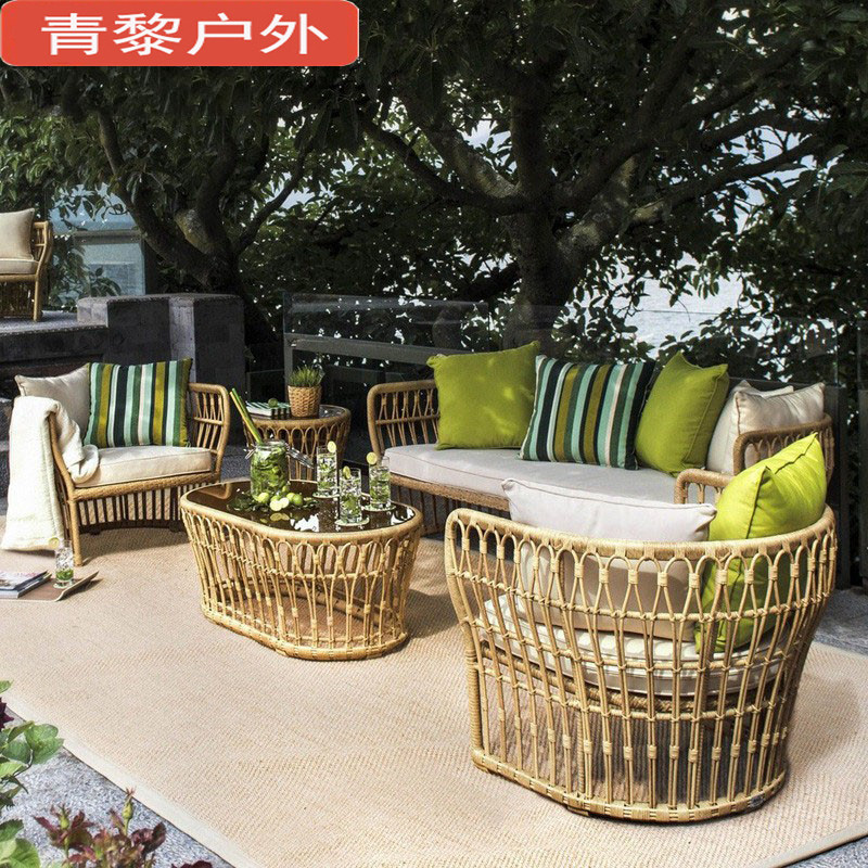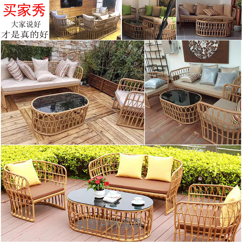 Outdoor rattan sofa patio outdoor furniture patio balcony coffee table combination waterproof leisure garden living room seating