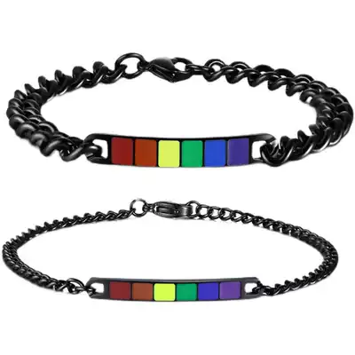 RainbowPride six color rainbow Black Bend brand titanium steel stainless steel same sex couple hand men and women jewelry