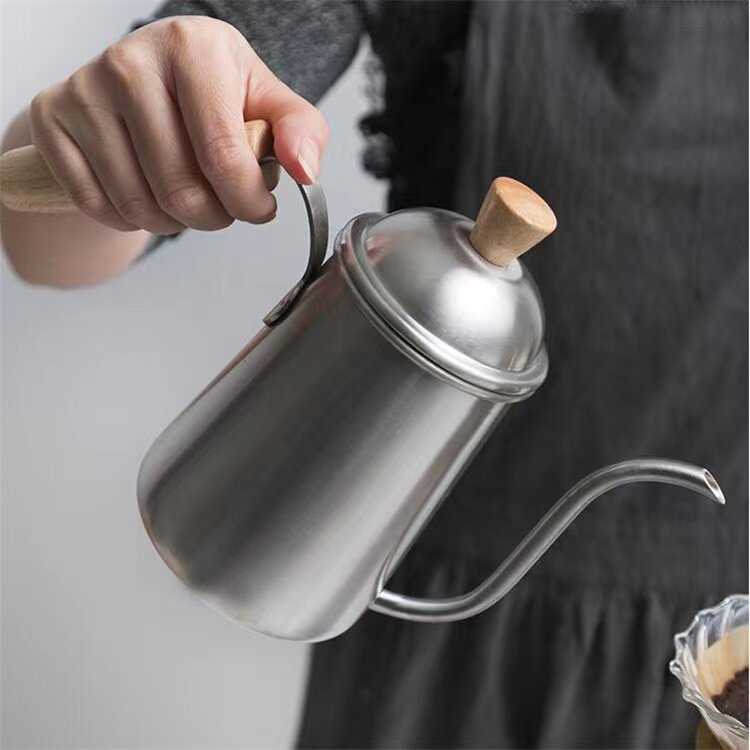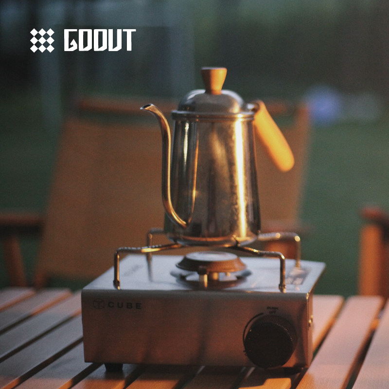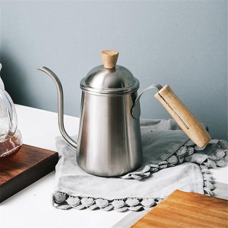 GOOUT outdoor camping picnic hand grinding coffee frosted stainless steel wood handle long mouth bracelet with fine mouth pot 0 7L liters