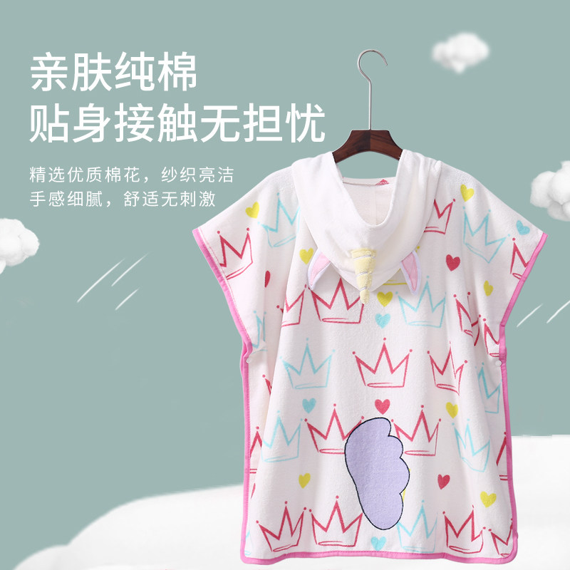 Children's bath towel hooded cloak pure cotton absorbent towel clothing boys and girls swimming bathrobe beach towel