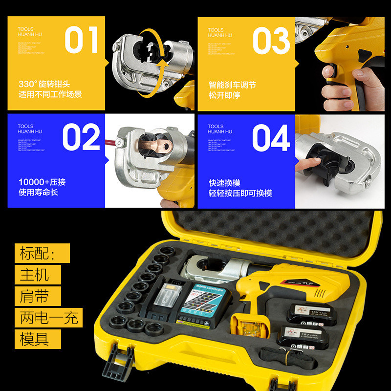 HHYD-400E electric hydraulic pliers 300G rechargeable wire clamp H type wire clamp copper aluminium nose press pliers