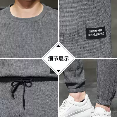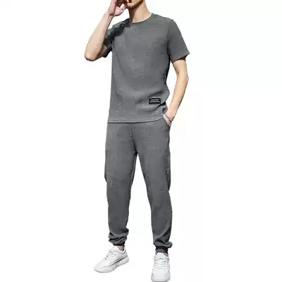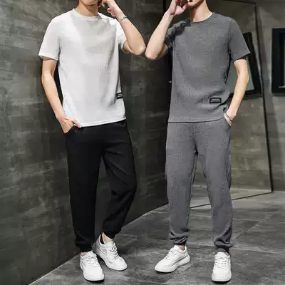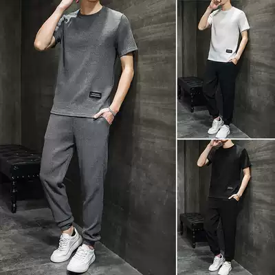 Short sleeve T-shirt summer linen suit Men's Ice Silk sports cotton linen two-piece loose trend set of clothes summer clothes