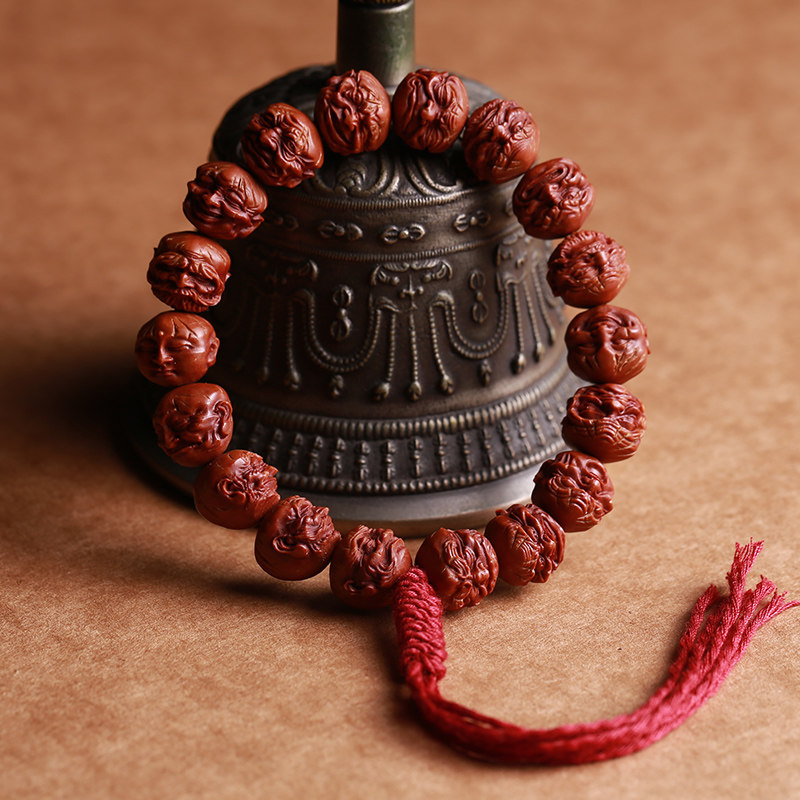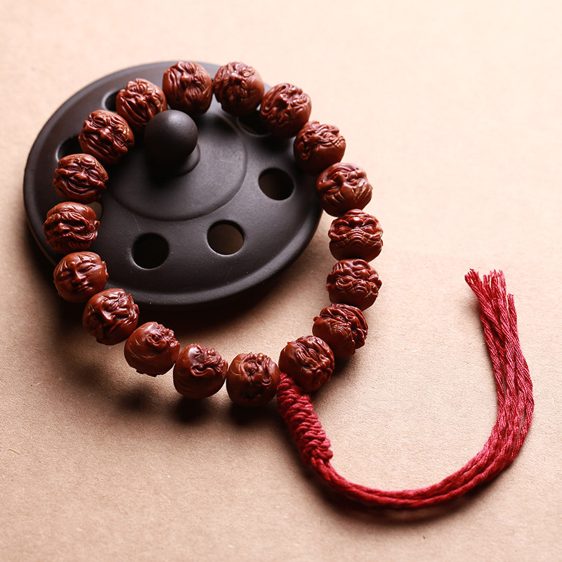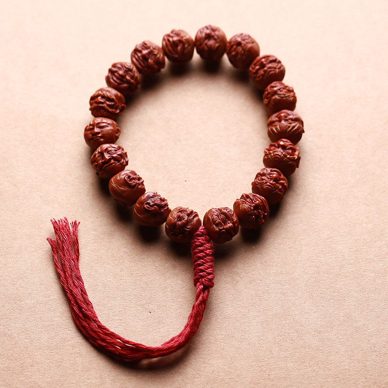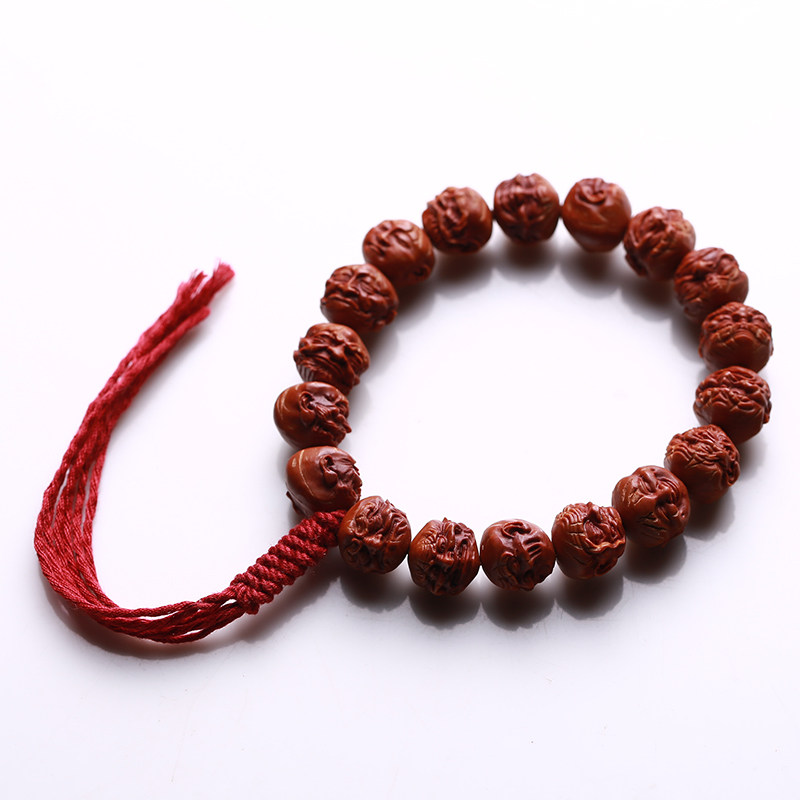 Natural dragon pattern walnut 18 Arhats hand string peach stone carving Buddha bead hand-held hand-held male and female literary play small seed olive stone