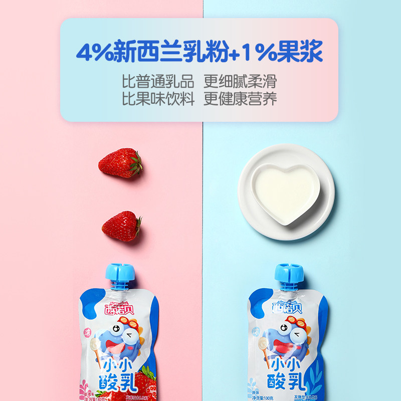 Sinobe children small yogurt milk baby snacks suction juice drinks Strawberry Flavor Original Taste 130g * 6 bags at normal