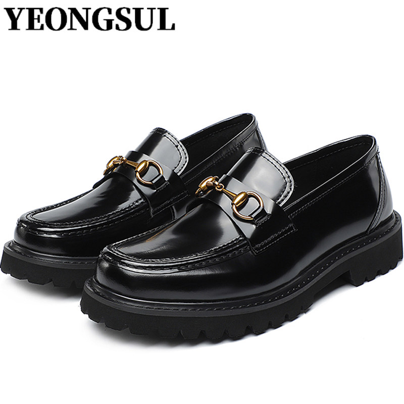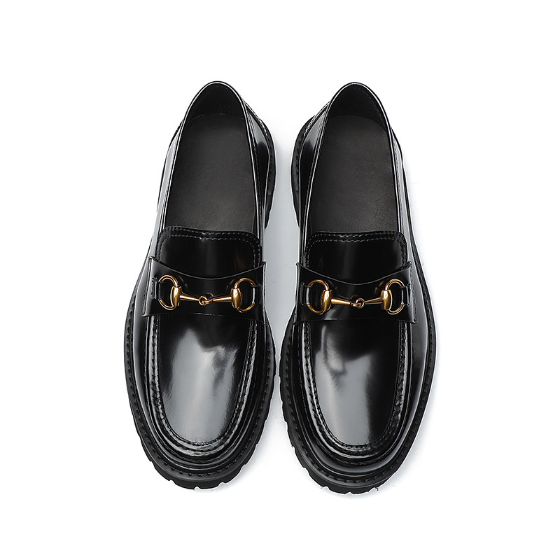 Bright cowhide casual British style leather shoes men's trendy shoes low-top thick-soled beanie shoes men's slip-on shoes to increase