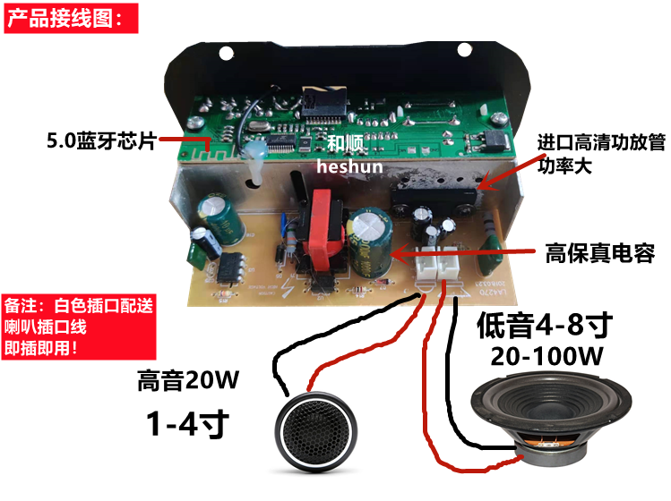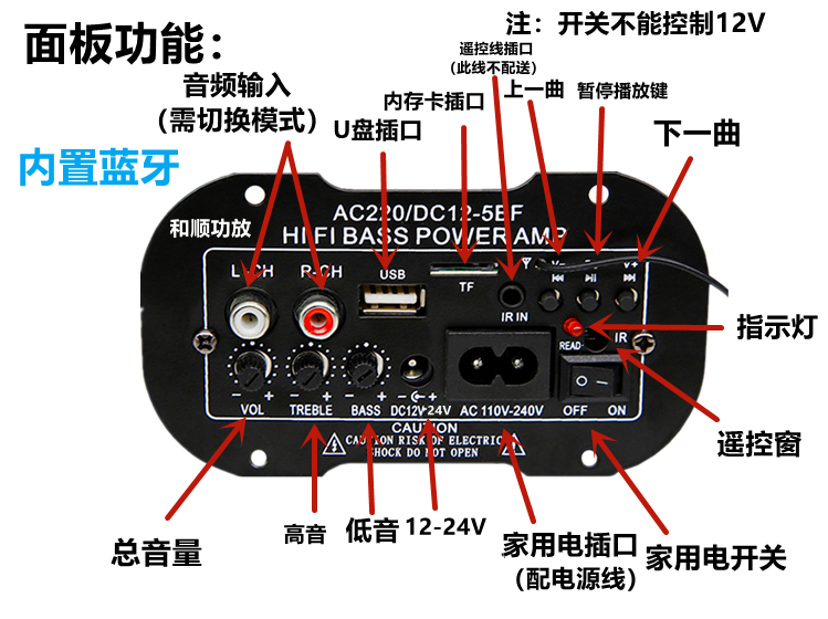Bluetooth utilitch small rectangular 4-8 inch available low sound gun sound power amplifier board 12V220V home car
