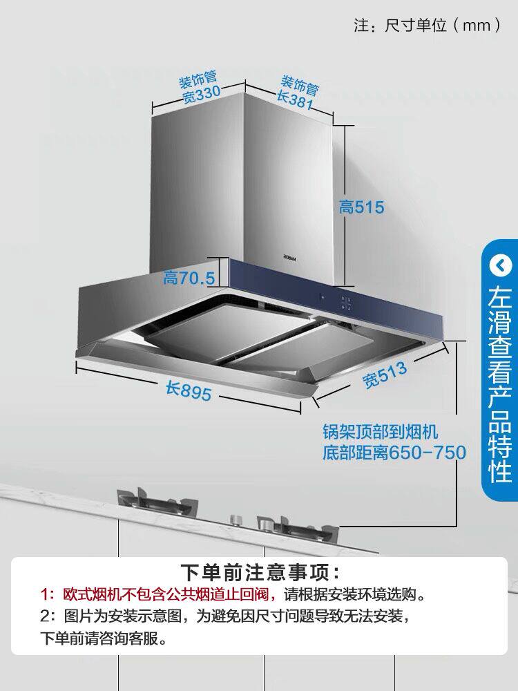 Owner 65X2 ventilator home kitchen large suction Euro top suction and discharge smoking mechatronics official flagship store