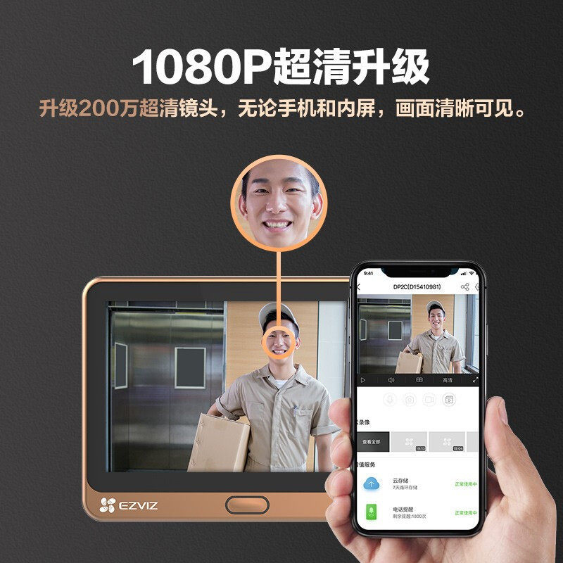 Fluorite smart electronic cat eye monitor, DP2C visual doorbell household mobile phone camera