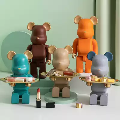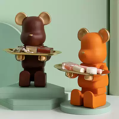 Light luxury creative violent bear ornaments living room entrance cabinet with key storage tray entry shoe cabinet modern decorations