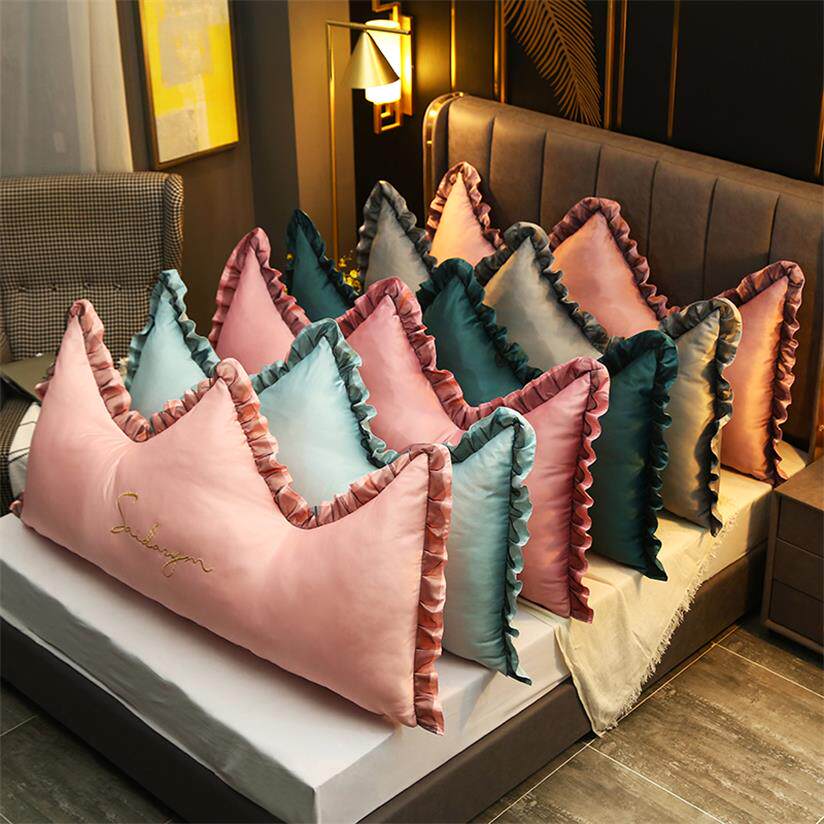 Bedside cushions washed genuine silk embroidered crown large backrest removable and washable European style tatami padded with pillow soft bag padded waist